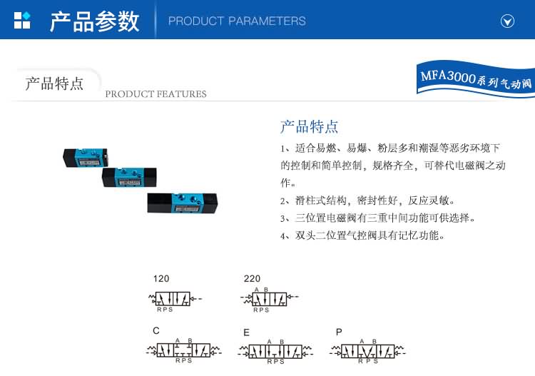 1.適合易燃、易爆、粉層多和潮濕等惡劣環境下的控制和簡單控制,規格齊全,可替代電磁閥之動作。