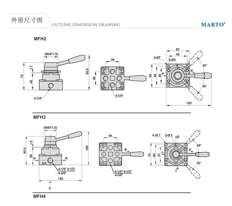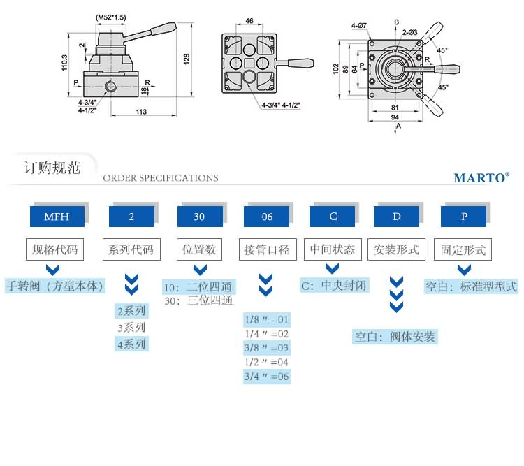2.四口三位手動閥,有三種功能可供選擇。