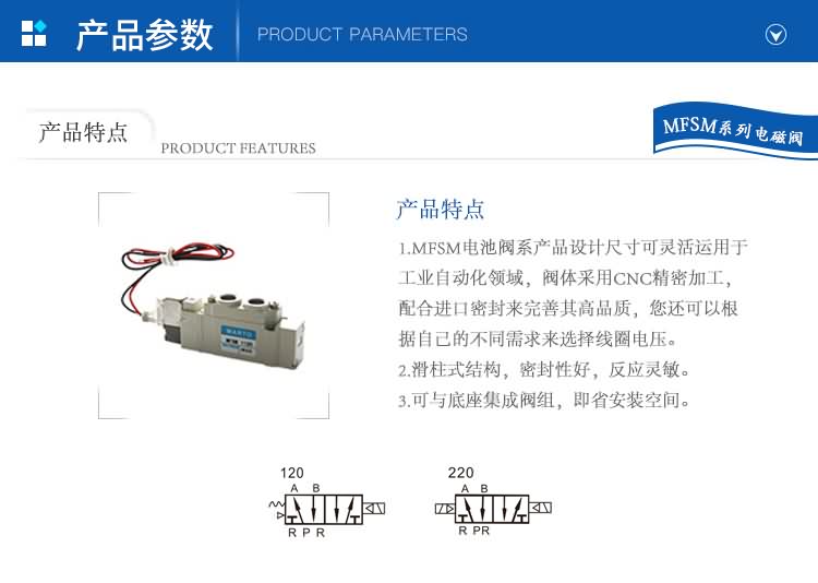 1.MFS電池閥系產品設計尺寸可靈活運用于工業自動化領域,閥體采用CNC精密加工,配合進口密封來完善其高品質,您還可以根據自己的不同需求來選擇線圈電壓。