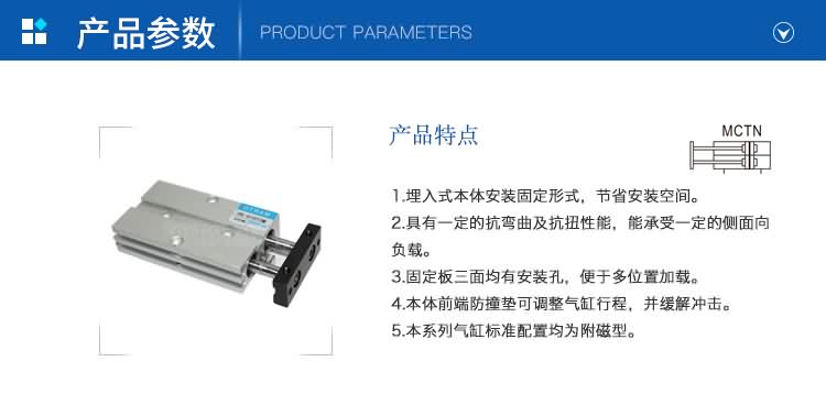4.本體前端防撞墊可調(diào)整氣缸行程,并緩解沖擊。
